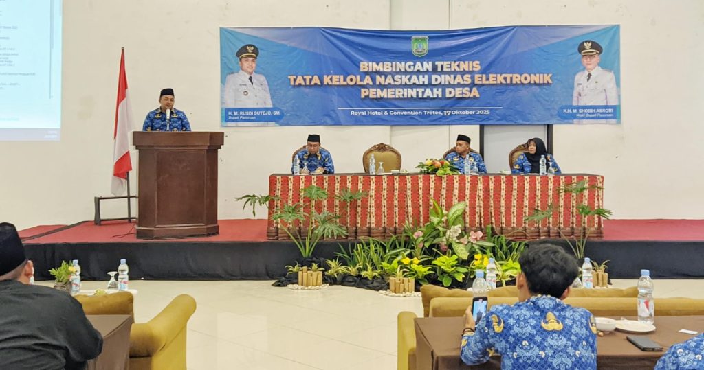 Langkah itu ditandai dengan penutupan Bimbingan Teknis (Bimtek) Tata Kelola Naskah Dinas Elektronik Pemerintah Desa Tahun 2025 oleh Bupati Pasuruan, Rusdi Sutejo, di Hotel Royal Tretes View, Kecamatan Prigen, Jumat (17/10/2025).