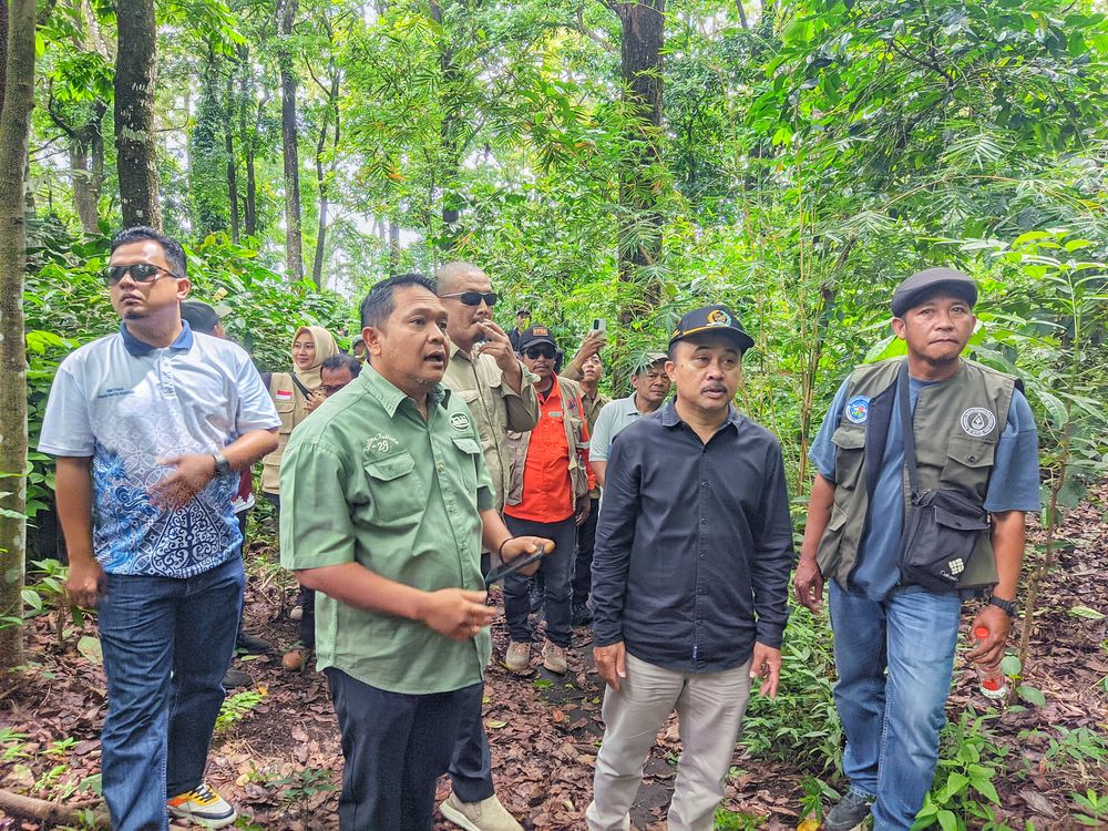 Tinjauan dilakukan di kawasan hutan yang masuk wilayah Kecamatan Prigen. Selama sekitar satu jam, anggota Pansus menelusuri jalur curam di tengah rimbunnya pepohonan mahoni, pinus, dan kopi.