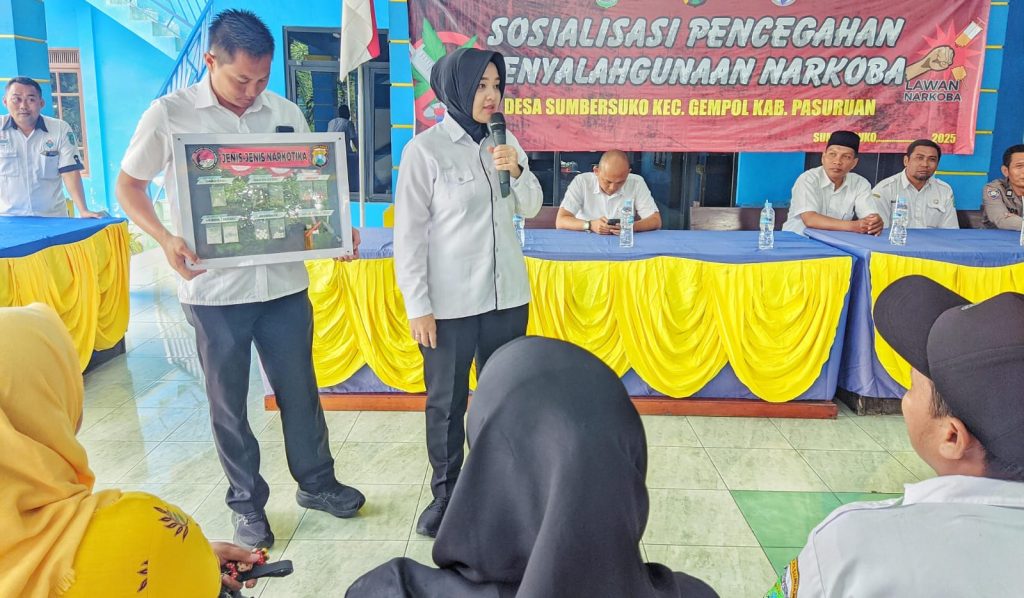 Pemerintah Desa Sumbersuko, Kecamatan Gempol, Kabupaten Pasuruan, menggelar sosialisasi pencegahan bahaya penyalahgunaan narkoba di balai desa setempat, Rabu (12/11/2025).